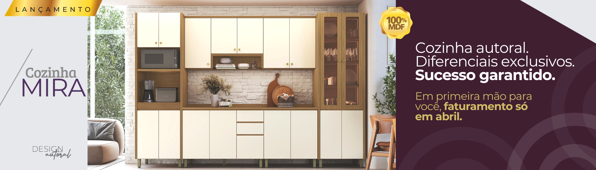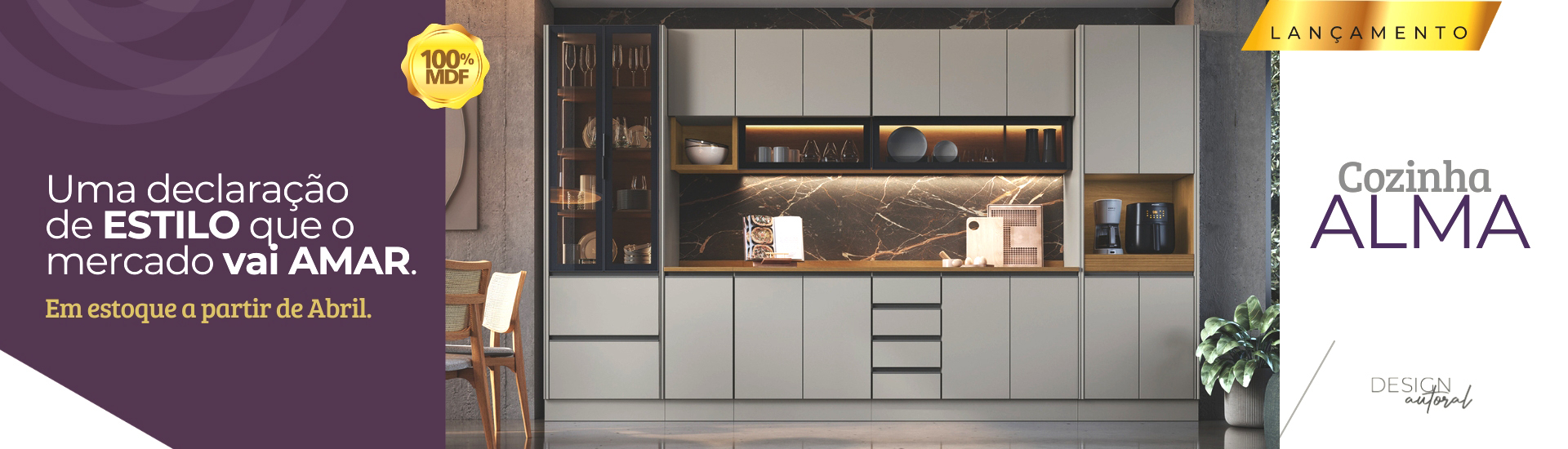 Kit de Cozinha Lótus 135cm 4 Portas 1 Gaveta Mdp Nature / Champanhe C/ Tampo 194